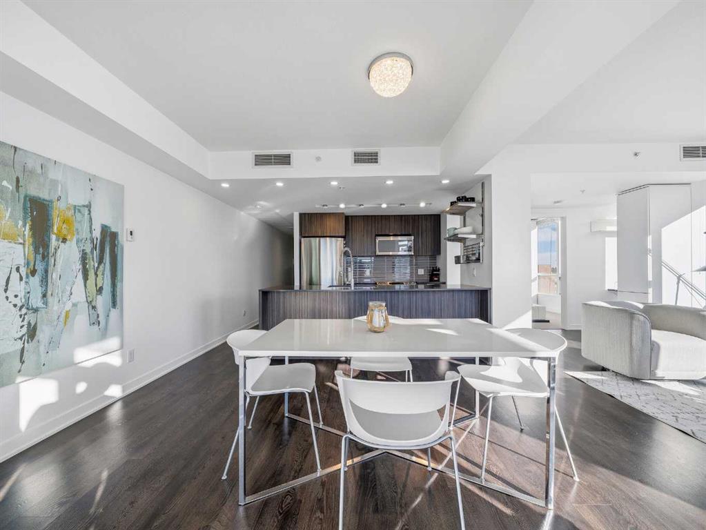 Rare opportunity to own a sub-penthouse apartment in the Calla, ideally located in Calgary’s Beltline. This southwest-facing corner unit offers over 960 sq. ft. of open-concept living space with city views and a clear outlook over the historic Lougheed House and its surrounding green space. Exceptionally quiet, this home shares only one adjoining wall in the ensuite. The unit above is set back, so most of the space has only a patio overhead. The kitchen features a large island seating four, stone countert...