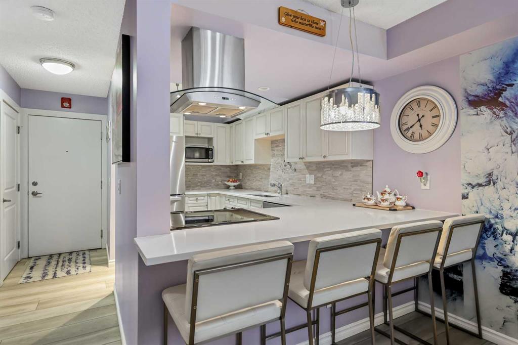 Sunny south-facing home offering the perfect blend of style, comfort, and convenience. This beautifully updated unit features new luxury vinyl plank flooring and freshly painted ceilings, creating a bright and modern feel from the moment you walk in. Enjoy underground parking and newer in-suite laundry for added ease and practicality. The gorgeous kitchen showcases custom soft-close cabinetry, quartz countertops, an undermount sink, newer stainless steel appliances, and a spacious eating area. The open-conc...