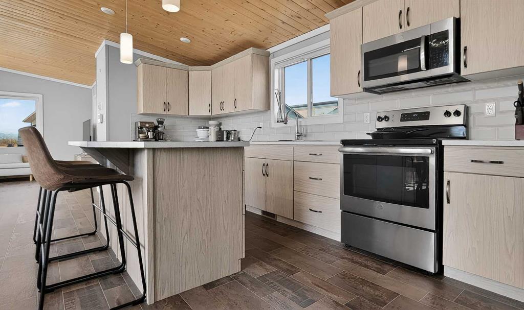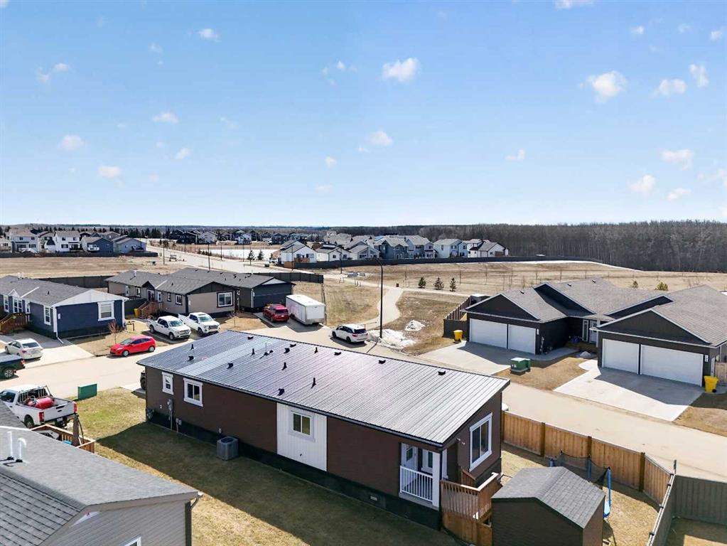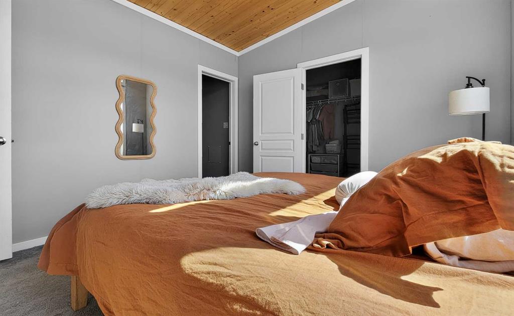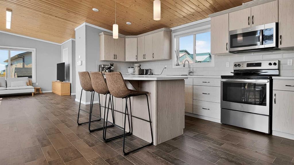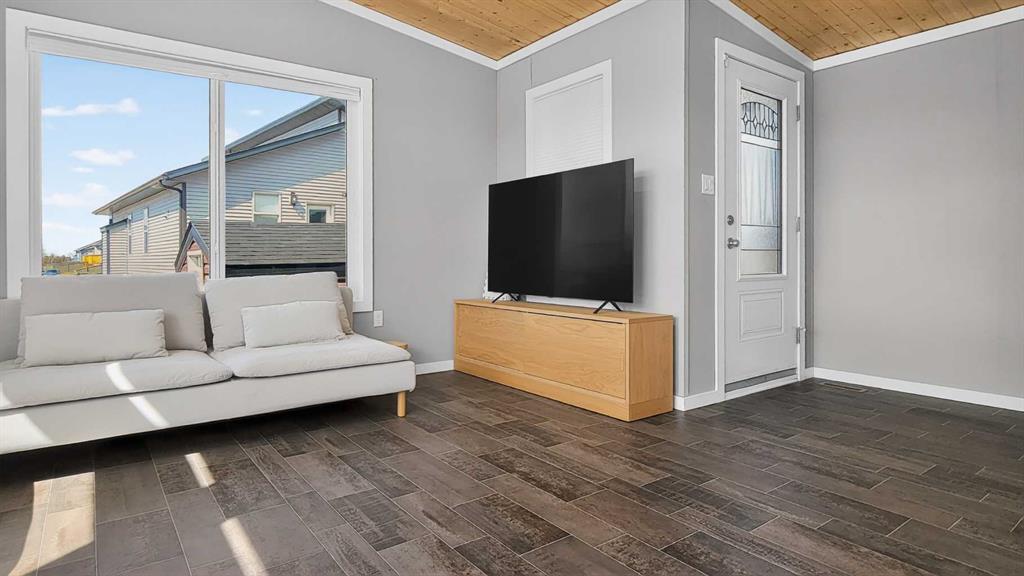 Experience style & comfort at this former show home in Kensignton, Grande Prairie. Your new home offers a well-designed 2-bedroom, 2-bathroom layout with a cohesive modern aesthetic throughout. A striking natural wood tongue-and-groove ceiling spans the entire unit, adding warmth and architectural character to every room. Cooled with Central AC, the open-concept kitchen and living area form the heart of the home. The kitchen is equipped with upgraded light grey shaker-style cabinetry, white subway tile bac...