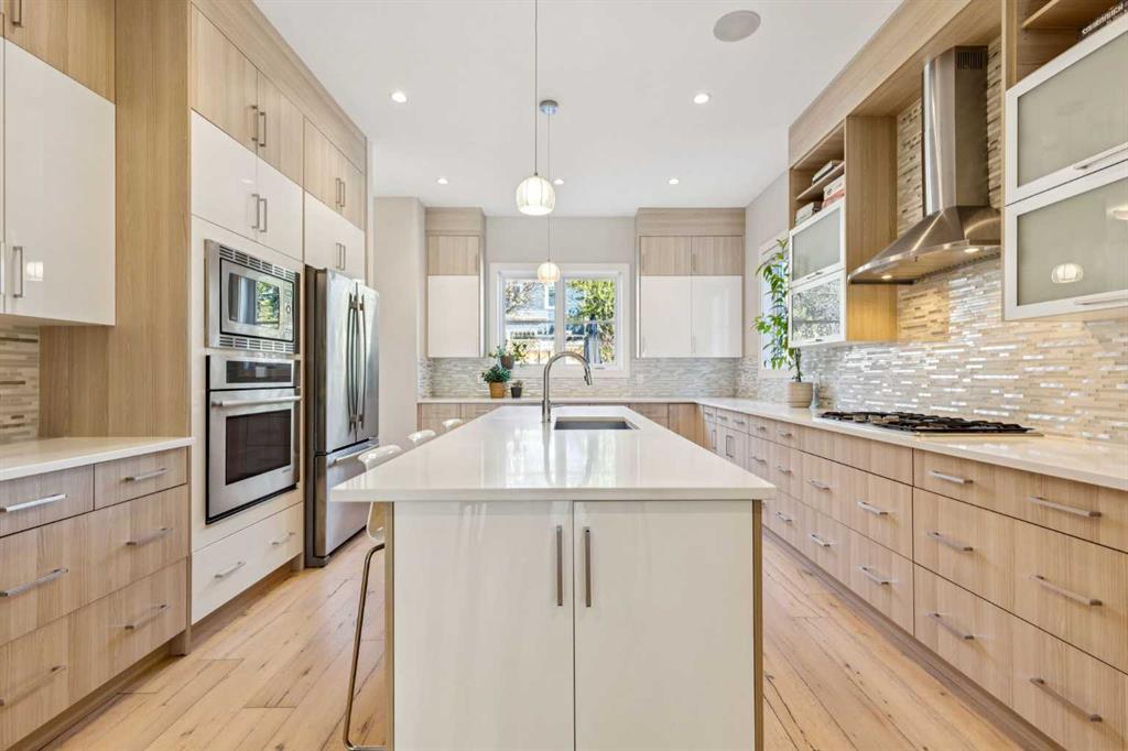 This inner-city infill delivers nearly 3,000 ft² of beautifully designed living space and a rare attached front double garage. Thoughtfully finished with exceptional soundproofing and QUALITY MATERIALS, it’s built for entertaining and everyday comfort. Step inside to 10-ft ceilings, wide-plank hardwood, and a bright, open plan with glass railings and large windows. At the centre of the home, the kitchen impresses with JennAir appliances, a 5-burner gas cooktop, an oversized island with seating, abundant dra...
