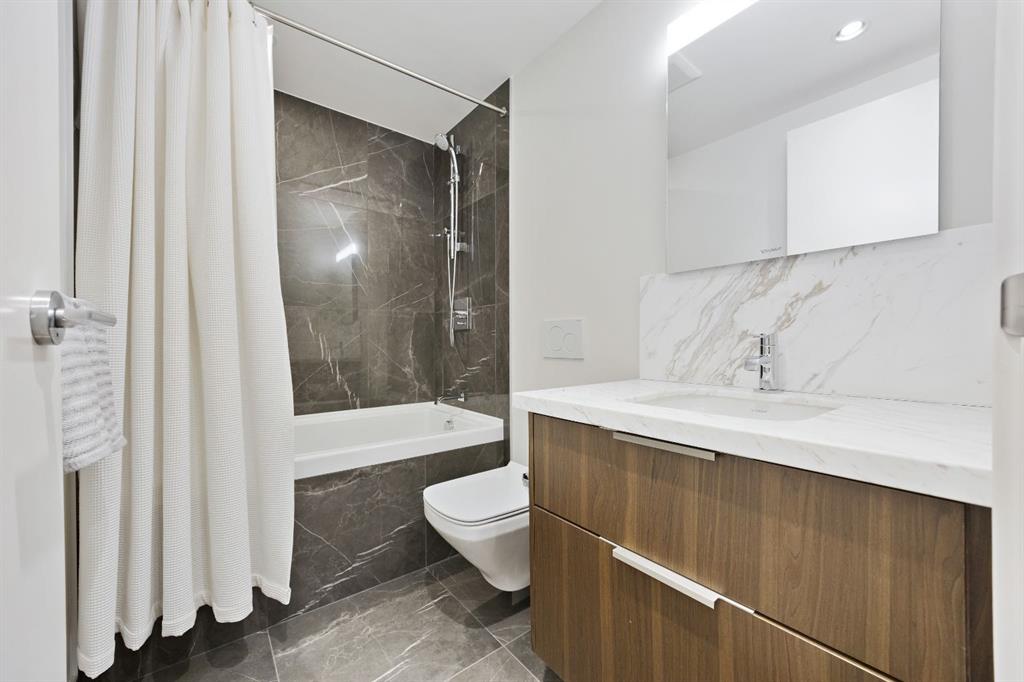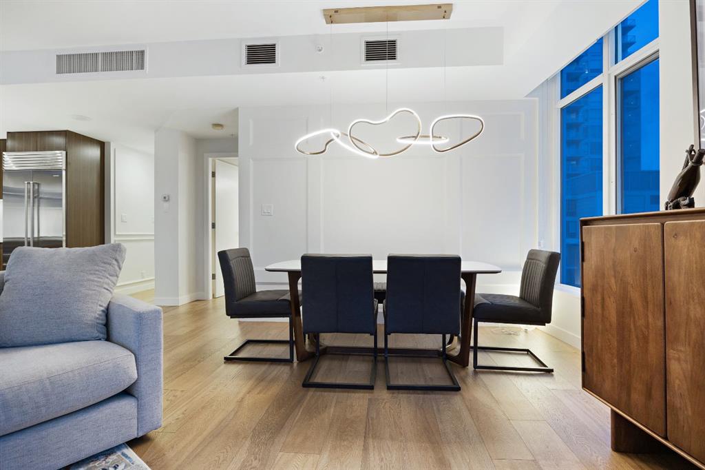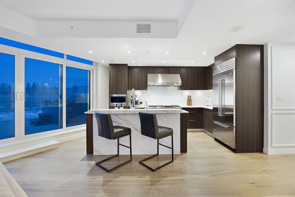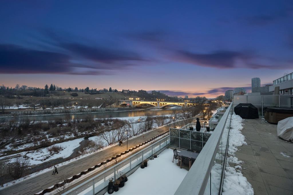 Rare opportunity to own an extensively upgraded executive residence in Parkside at Waterfront, ideally positioned along the scenic Bow River and overlooking Prince's Island Park. Offering over 1,300 square feet of refined living space, this beautifully upgraded suite features an exceptional 731 square feet wraparound patio complete with a hot tub and built-in gas fireplace, perfect for enjoying riverfront views in one of Calgary’s most picturesque settings. A spacious foyer leads to a striking hallway with ...