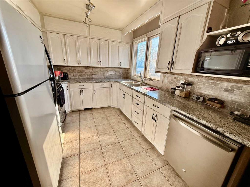 Great family home in a quiet location. This home boasts a large private lot with a heated detached double garage ( 24x24) and driveway. Inside is a spacious kitchen and dining area, living room with a wood burning fireplace for those cold winter evenings. Three bedrooms and two bath plus main floor laundry are all included on upper level. The fully finished basement could be an income booster if you wish. It boasts a large family room, kitchen/dining area, three bedrooms, bathroom, and the mechanical room ...