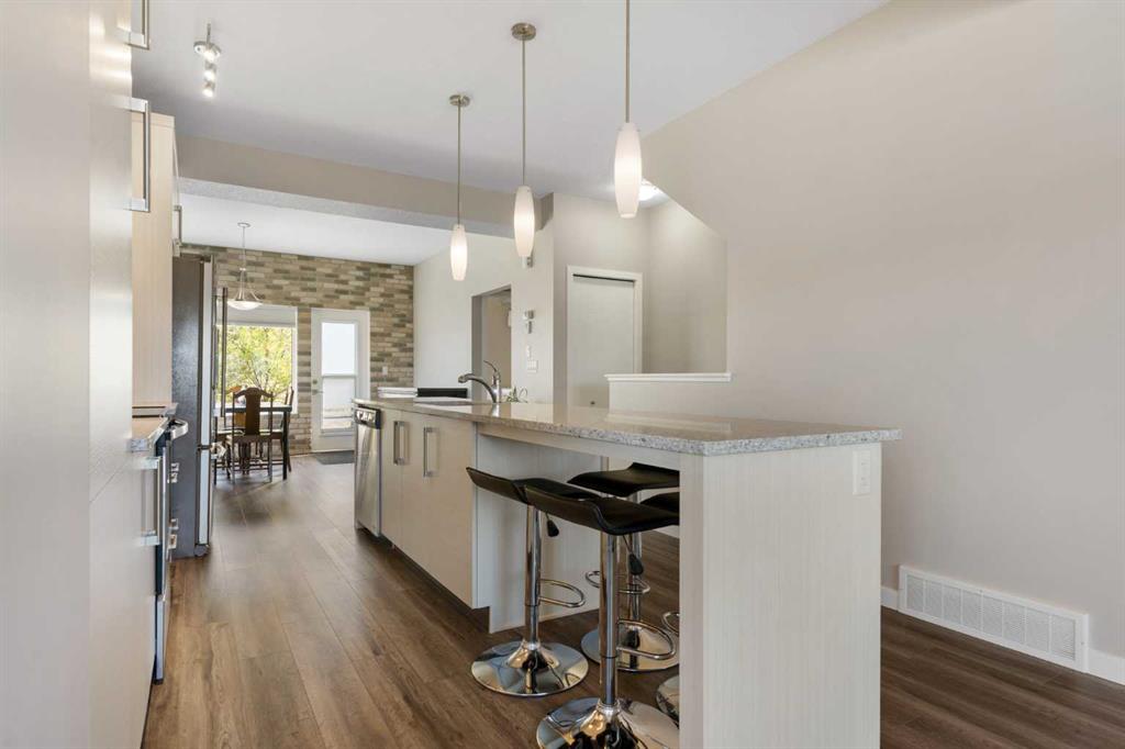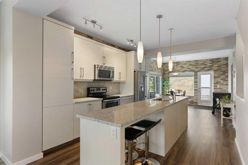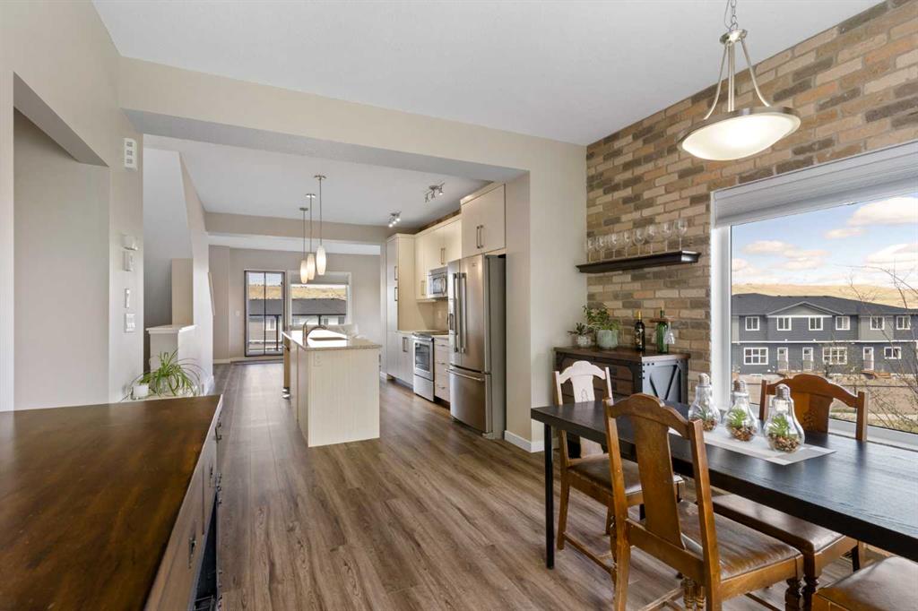 Welcome to this bright and stylish 3-storey corner townhouse in The Rise, backing onto green space for added privacy and natural light. The open-concept main level features a modern kitchen with central island, spacious living and dining areas, brick accent wall, main floor laundry, and A/C rough-in. Enjoy both a front balcony and private rear outdoor space, perfect for relaxing or entertaining. Upstairs offers 3 bedrooms and 2.5 bathrooms, creating one of the most functional layouts in the complex, with e...